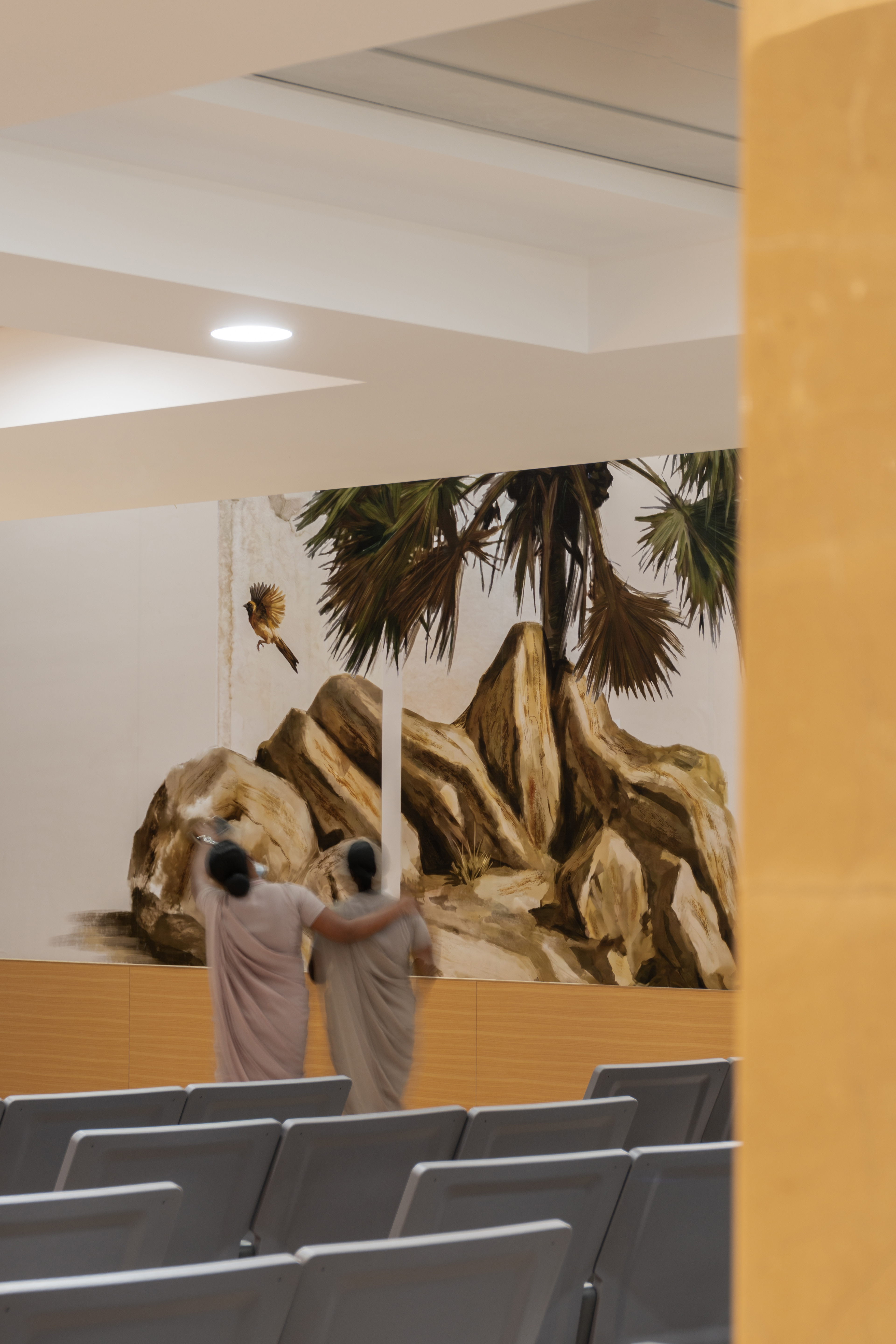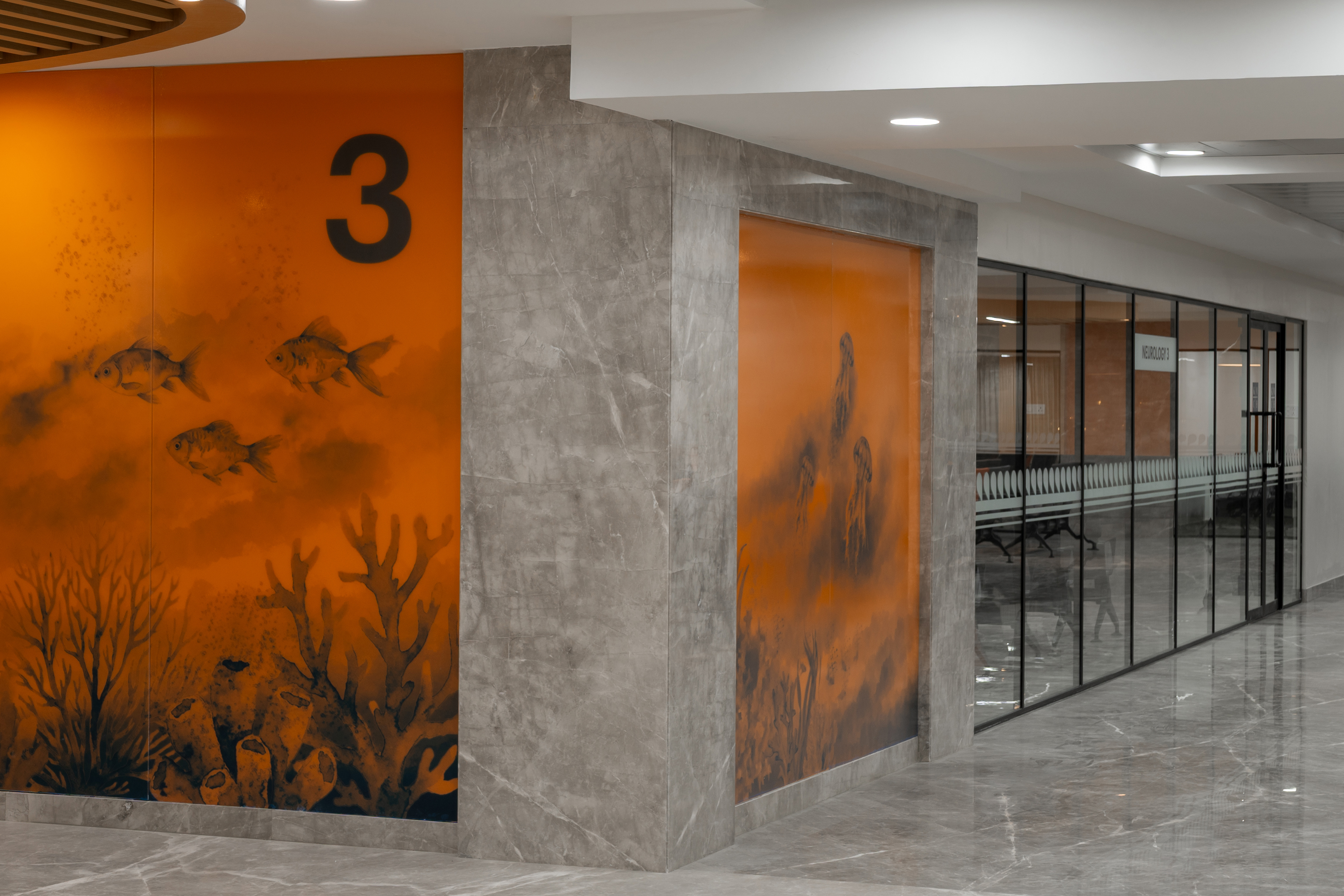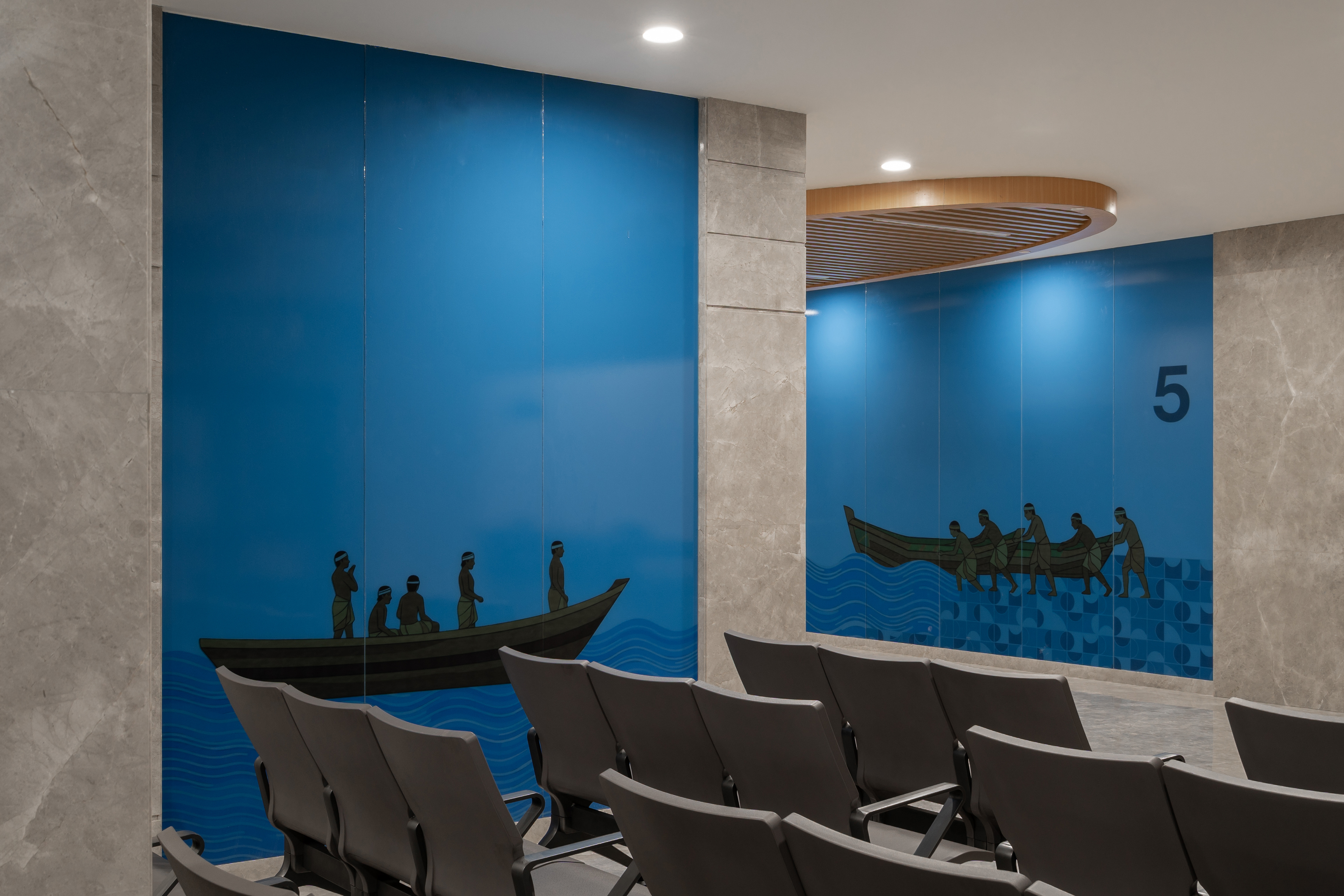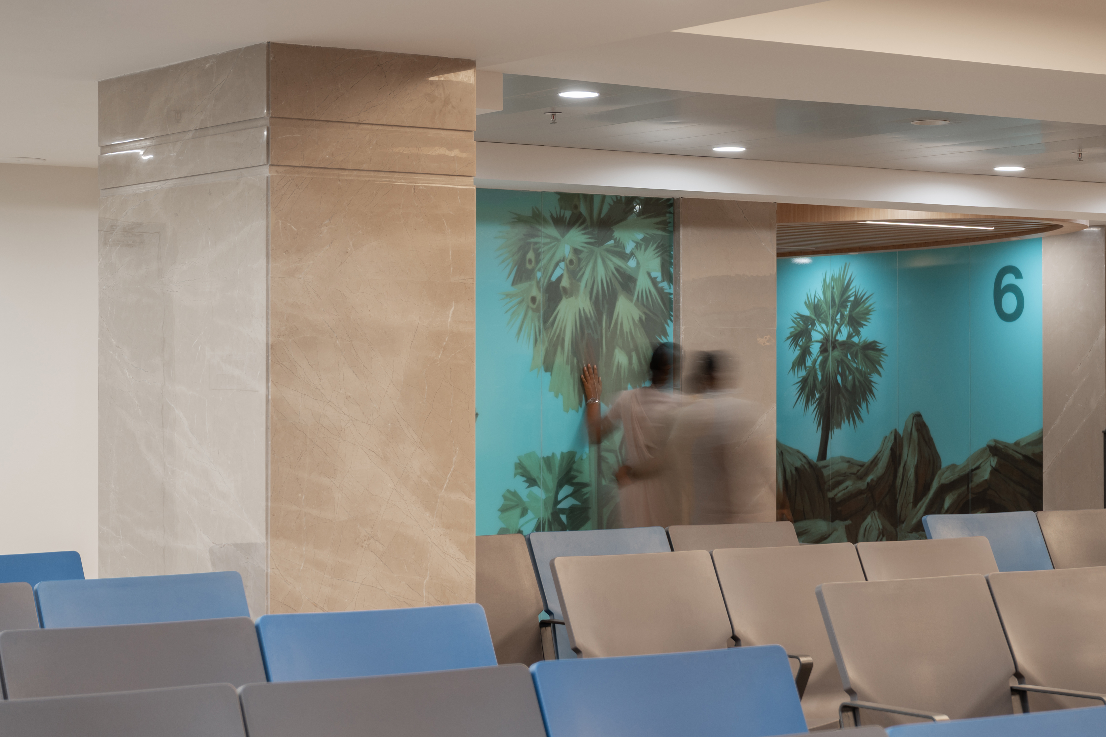 Biophilic design in clinical settings has reported reduced stress and improved well-being when visual cues echo nature. Keeping this in mind simple and direct graphics were developed taking inspiration from the 5 Tinais - Kurinji, Mullai, Marutham, Neithal, Palai.