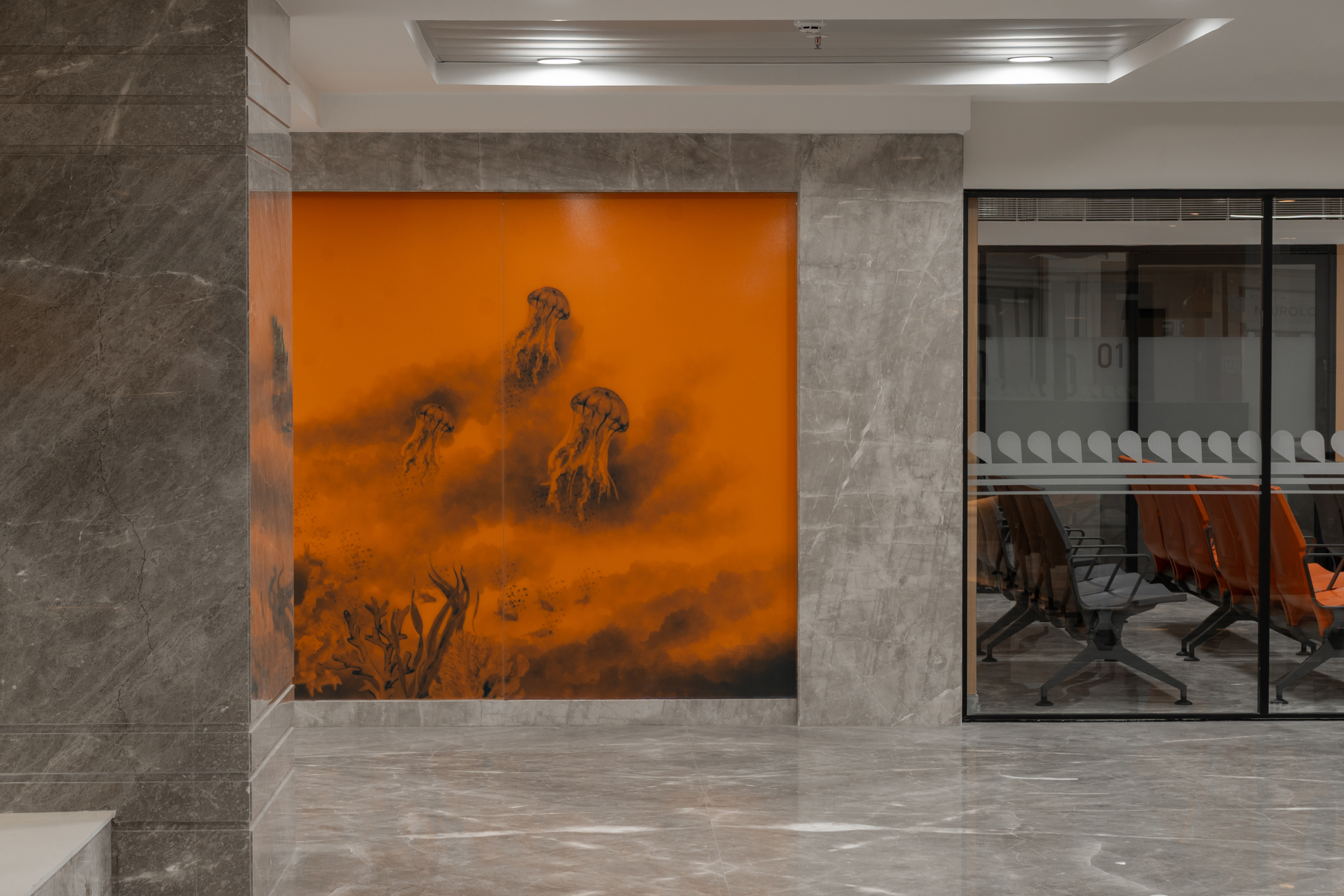 Inspired by the underwater life observed in the coasts of Rameshwaram, this floor represents Neidhal (coastal areas)